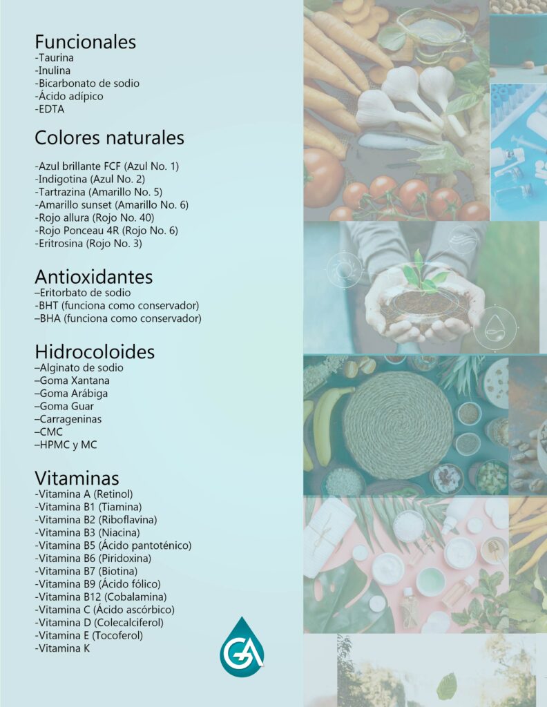 Aditivos Funcionales: Almidones, estabilizantes, vitaminas, y más.